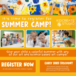 Kidcreate Studio, a local art studio for children in Fairfax Station, VA, invites children to get creative this summer! Their exciting camps are designed to inspire and educate young artists in an environment where giggles and grins are encouraged!